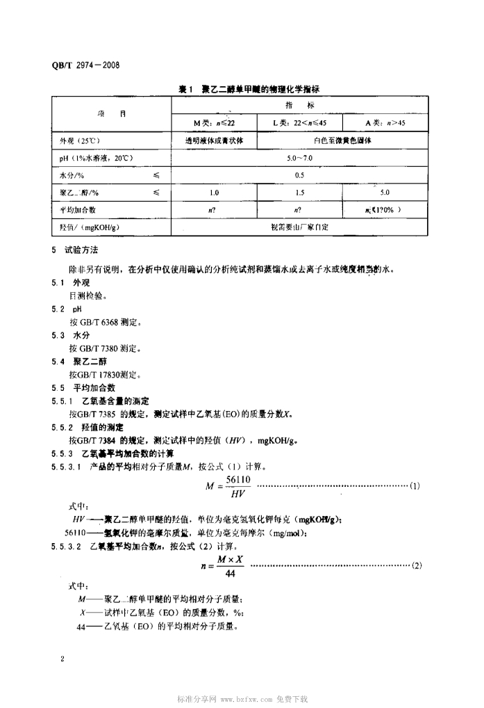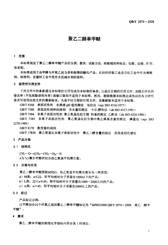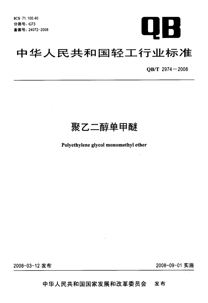 QB 2974-2008-T 聚乙二醇单甲醚产品标准