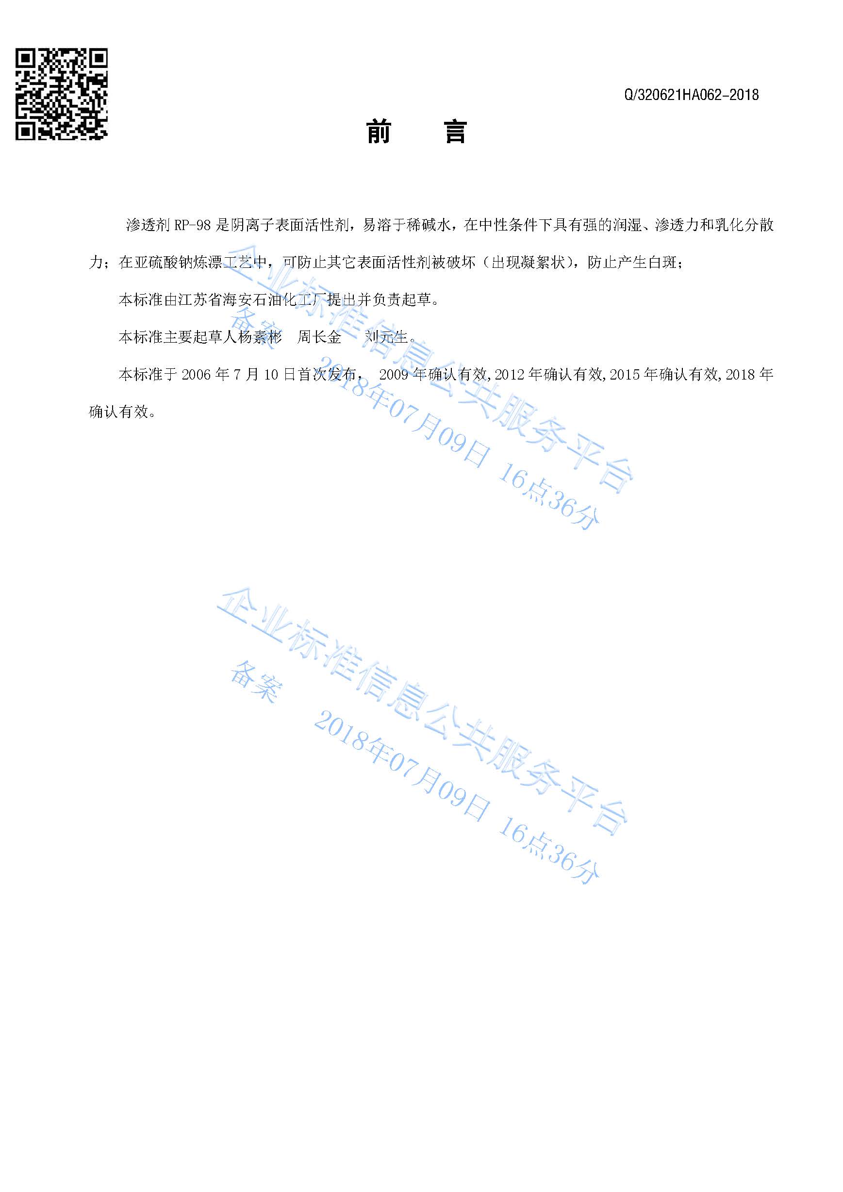 Q/320621HA013-2018 渗透剂JFC-M产品标准