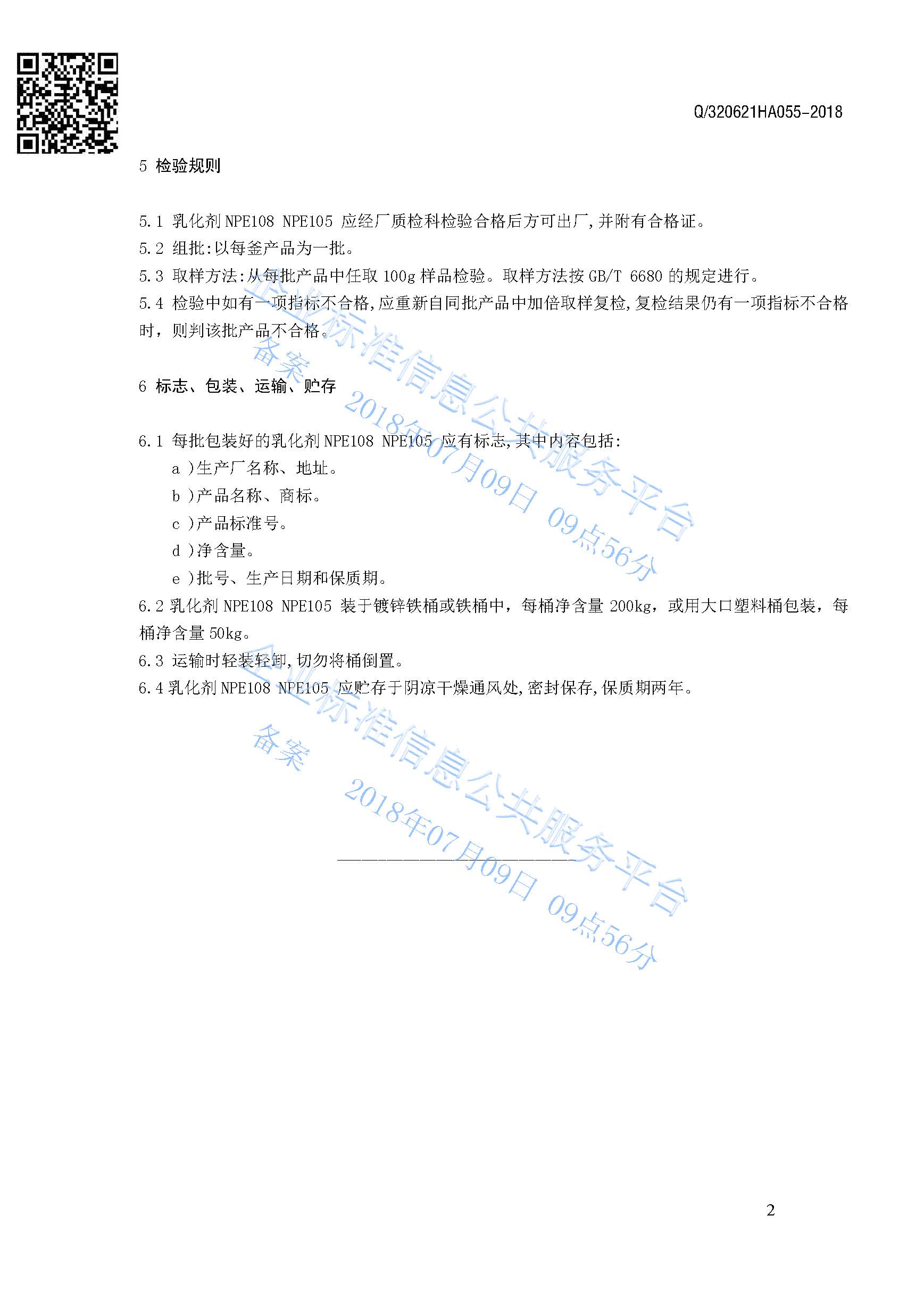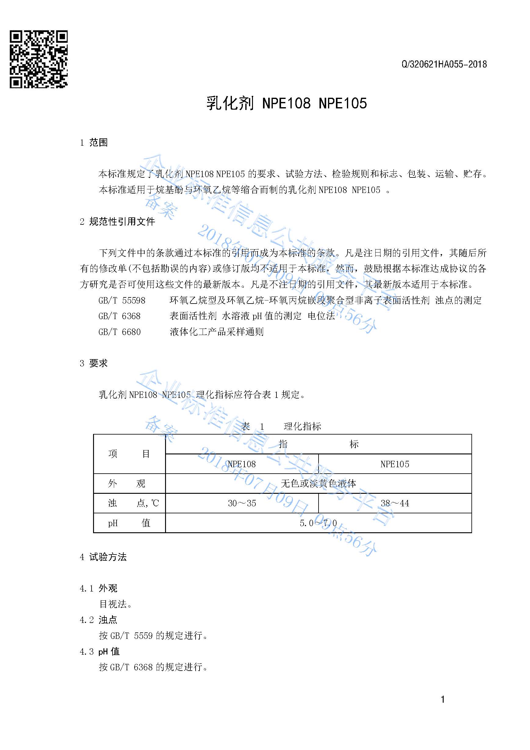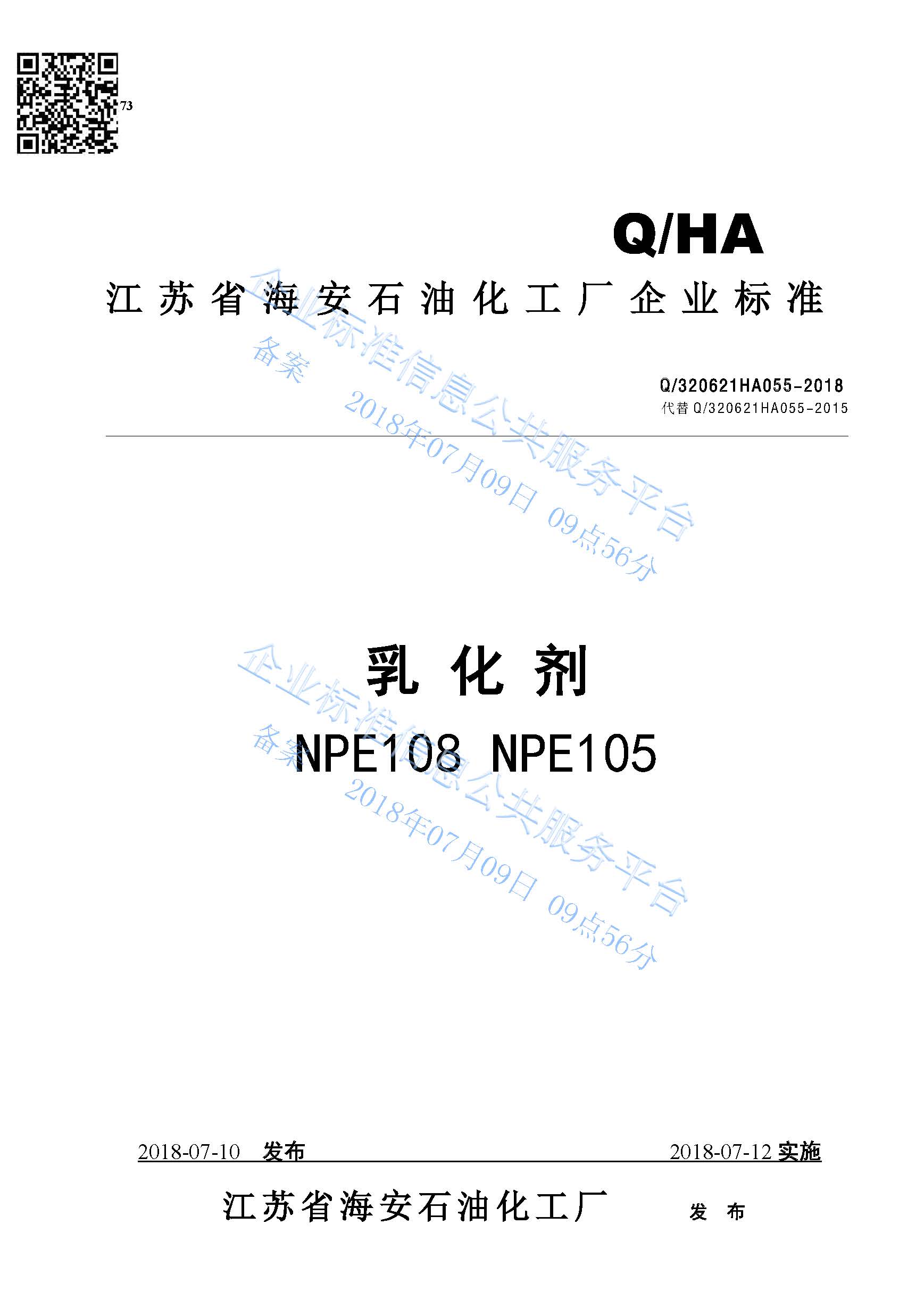 Q/320621HA055-2018 乳化剂NPE108 NPE105产品标准