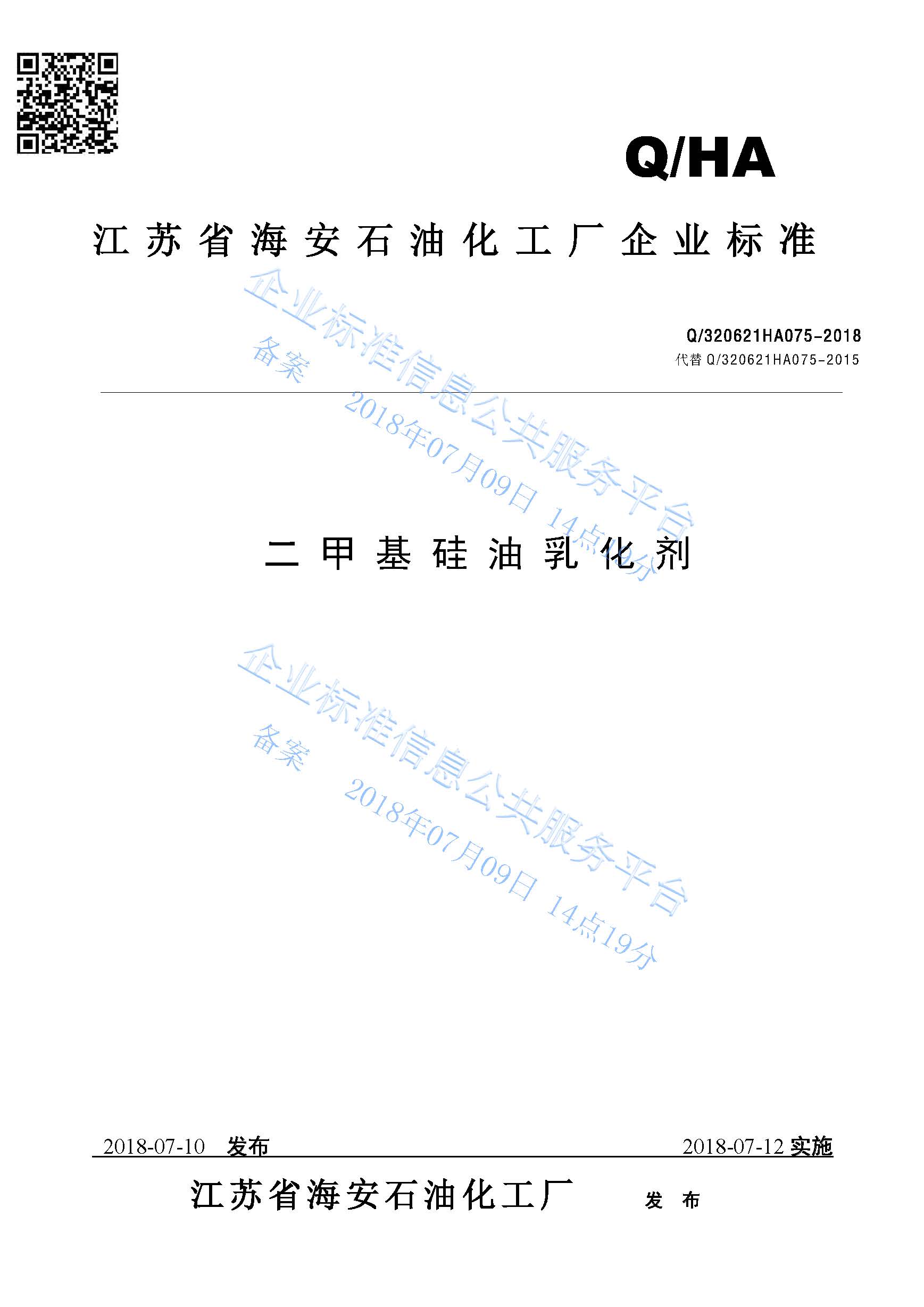 Q/320621HA075-2018 二甲基硅油乳化剂产品标准