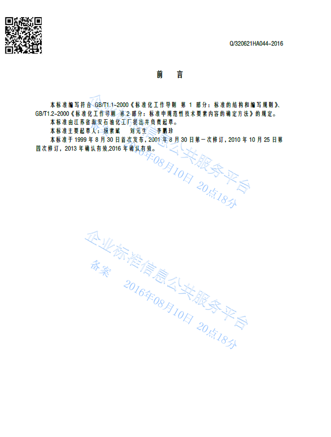 Q320621HA044-2016 添加剂AC-1210系列产品标准