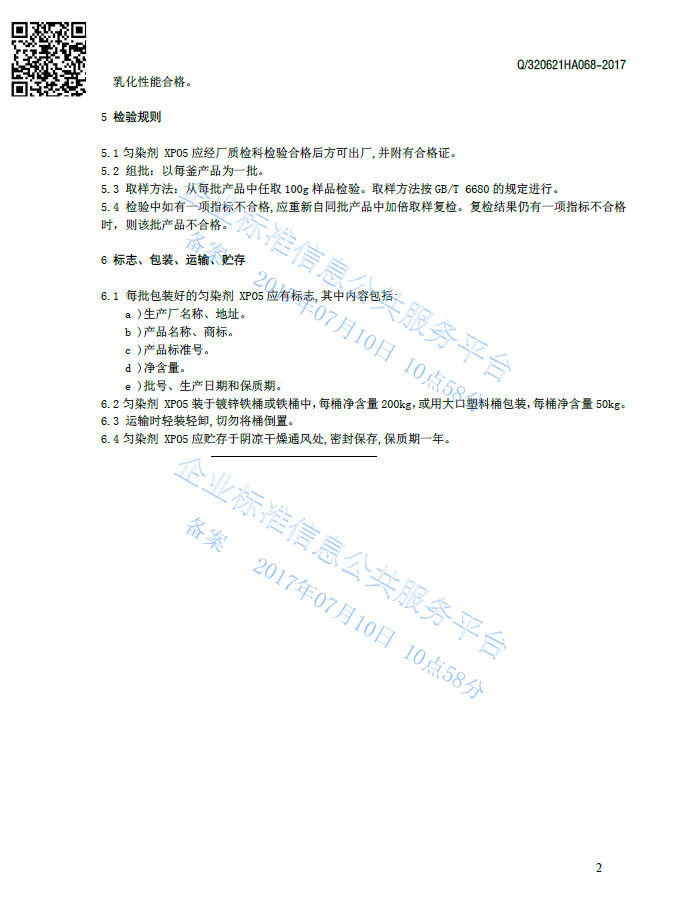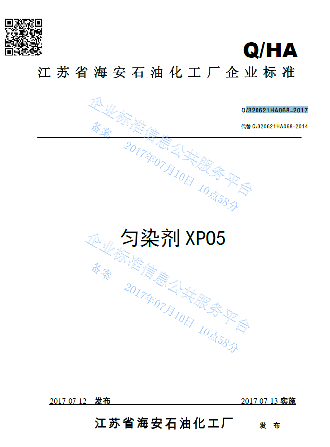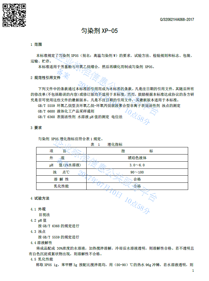 Q/320621HA068-2017 匀染剂XP05产品标准