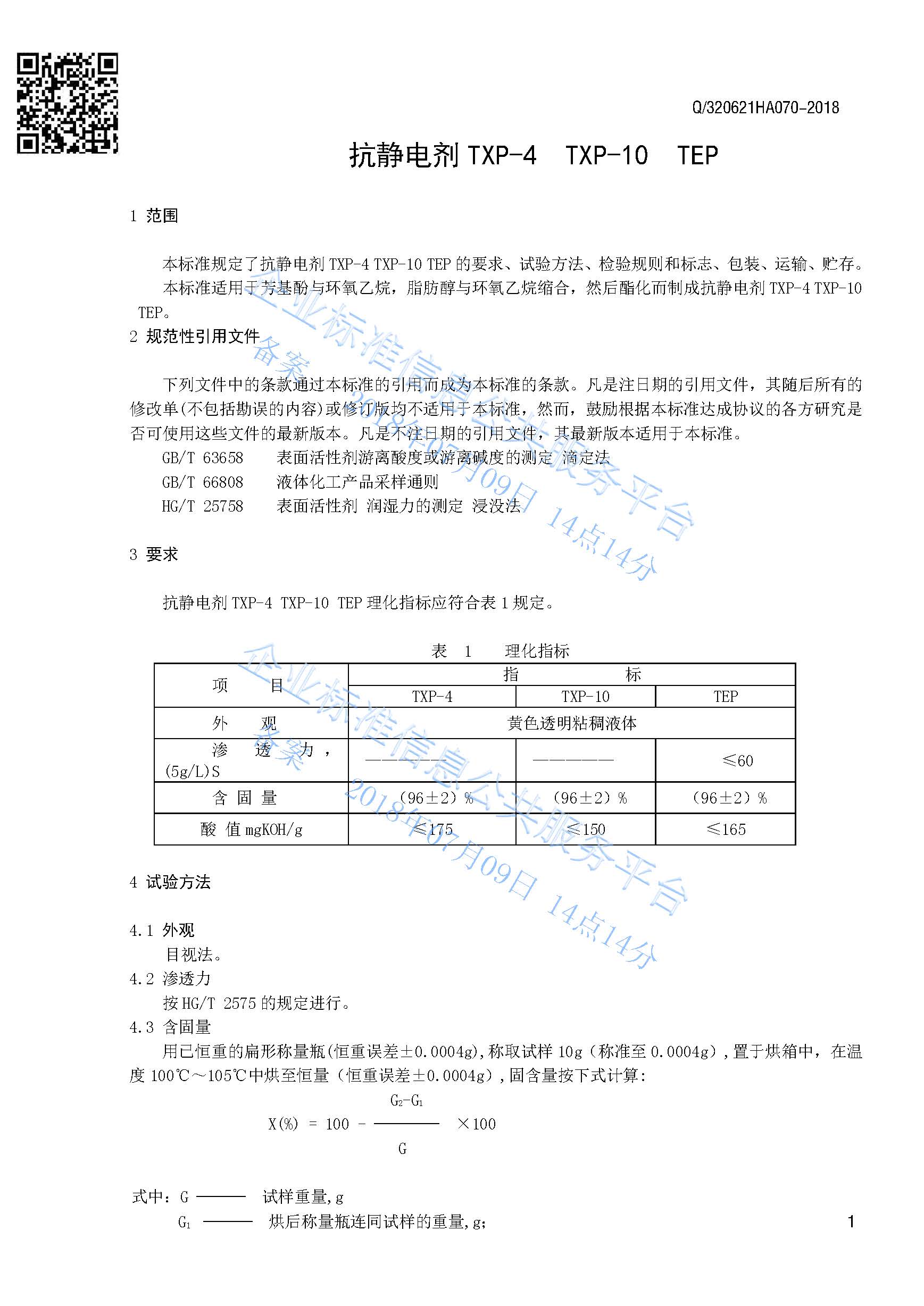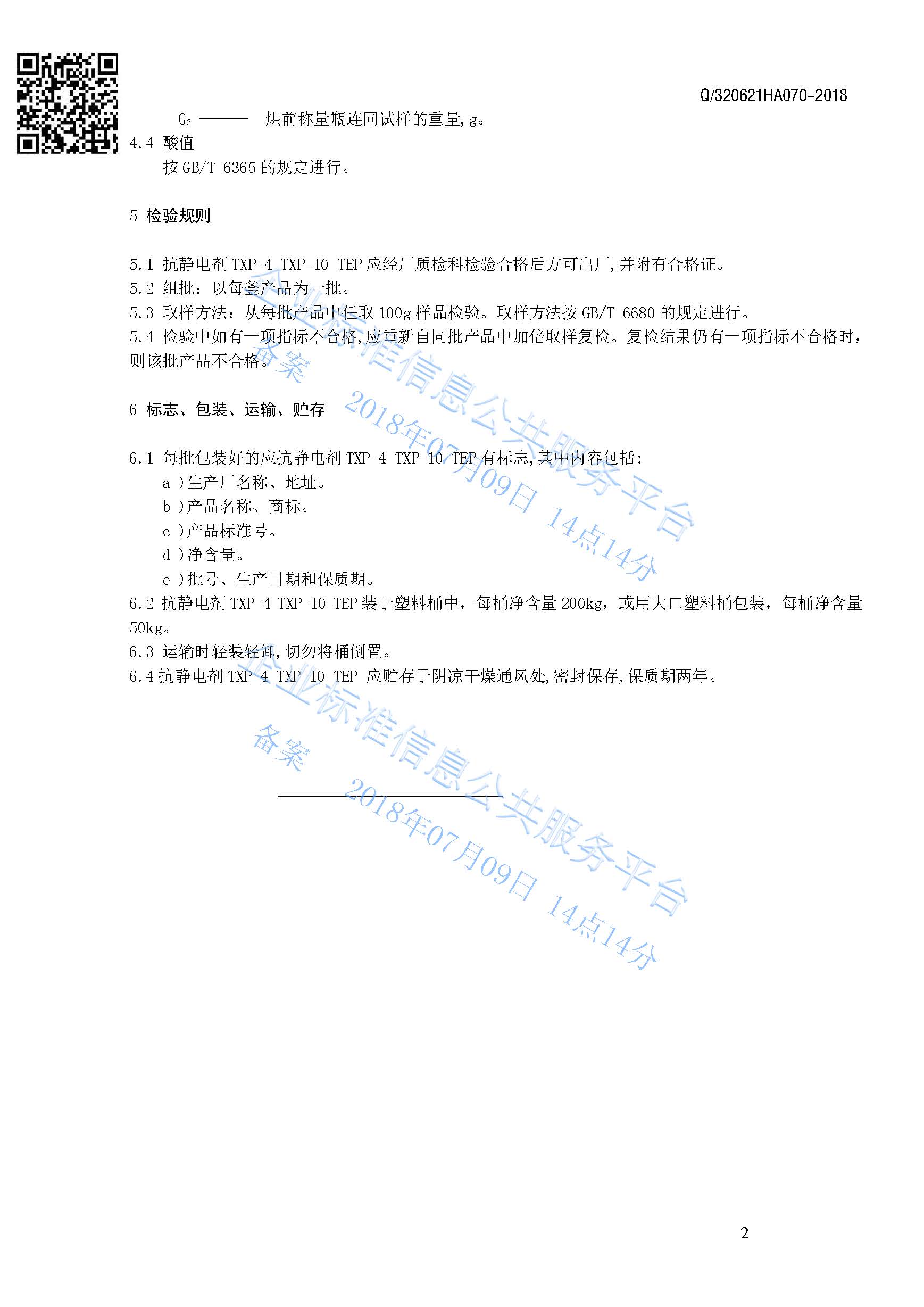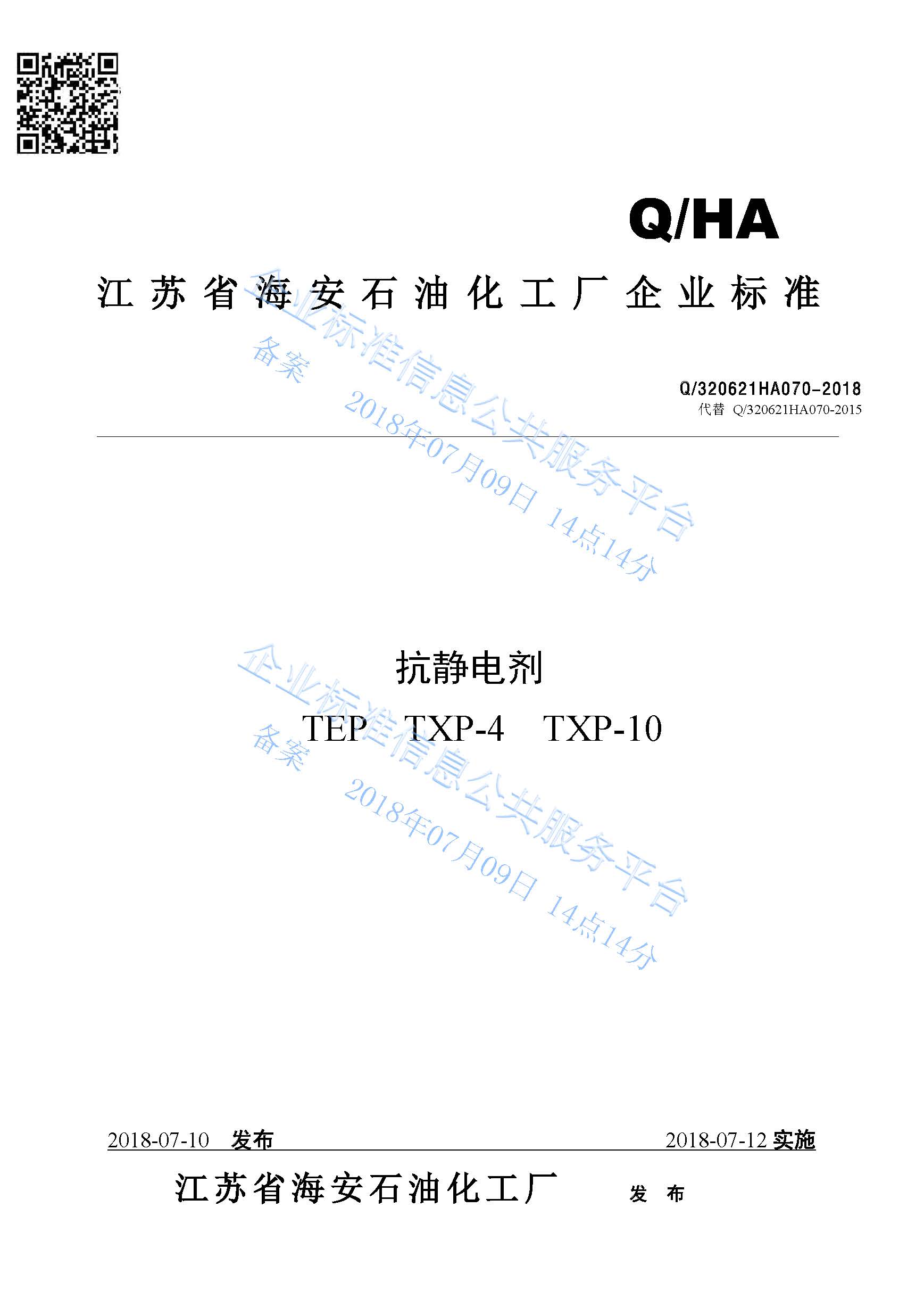 Q/320621HA070-2018 抗静电剂TEP TXP-4 TXP-10产品标准