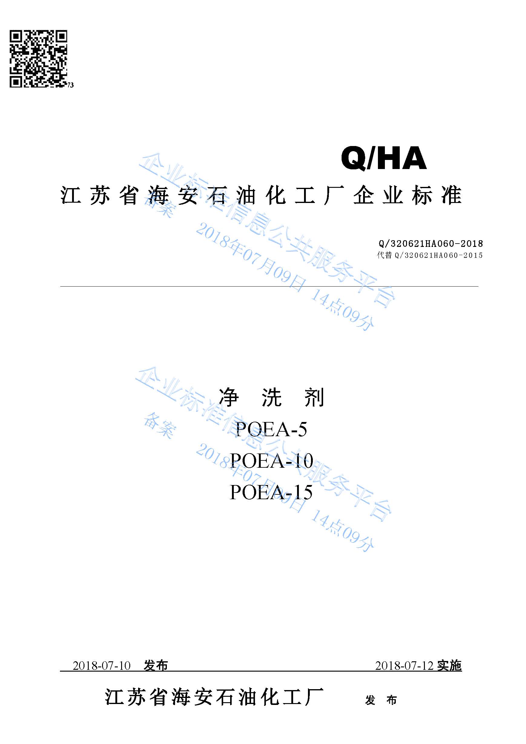Q/320621HA060-2018 净洗剂POEA-5 POEA-10 POEA-15产品标准