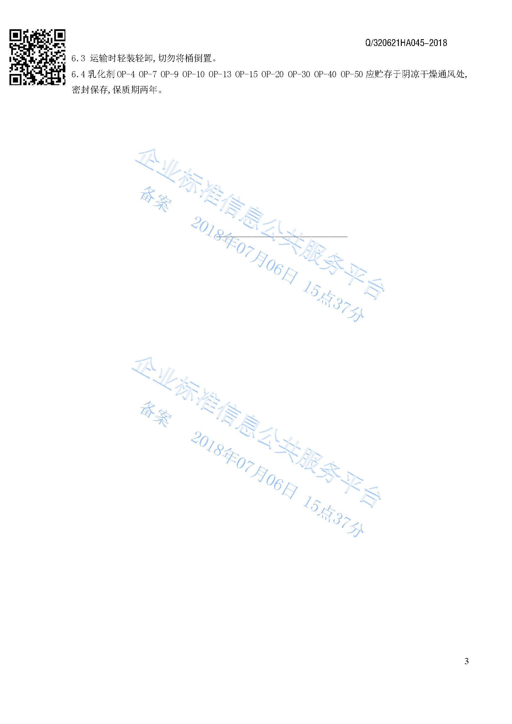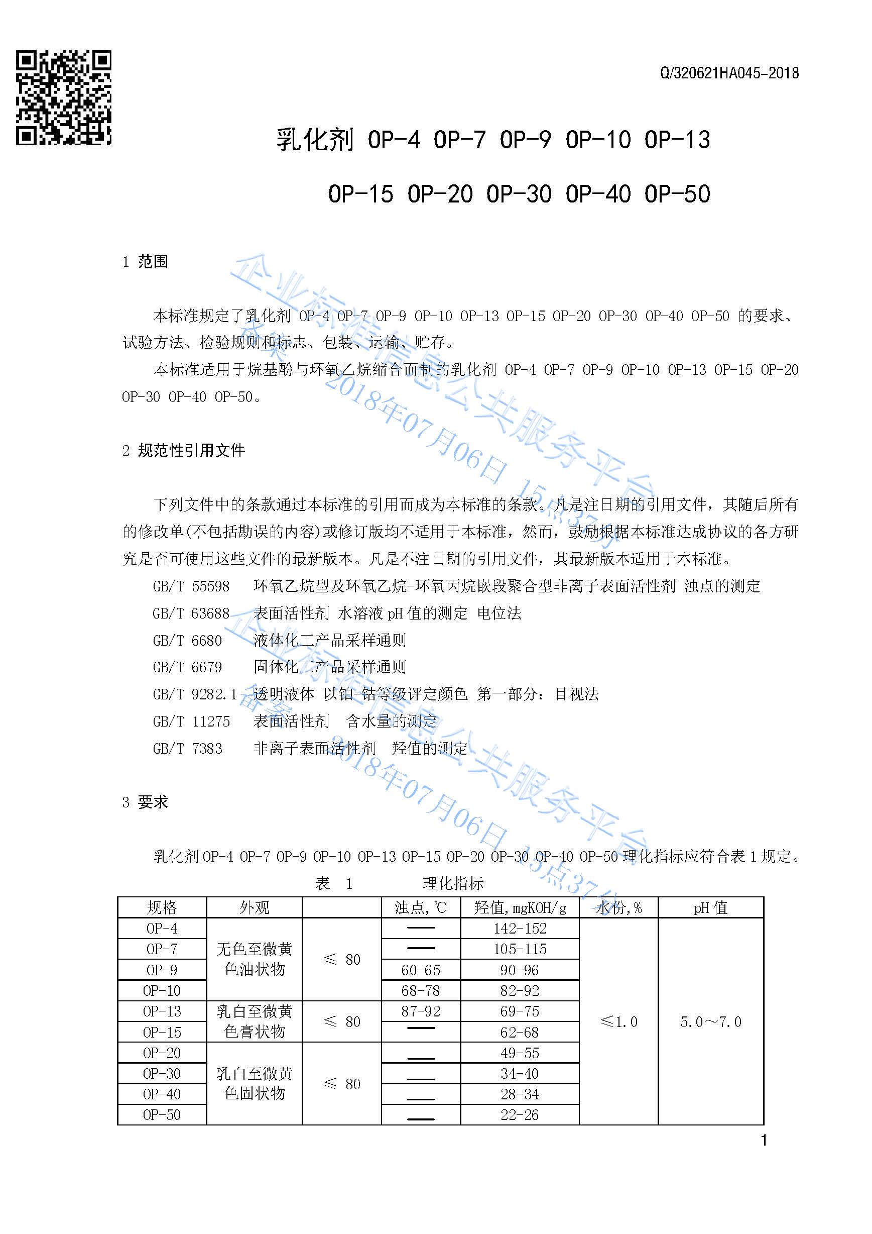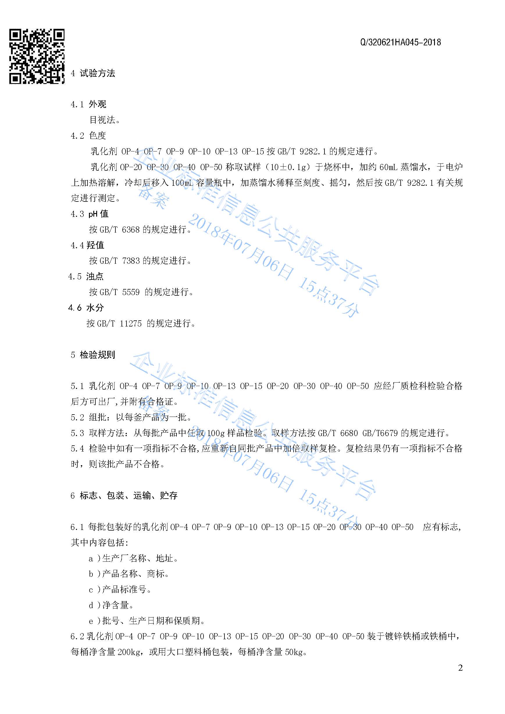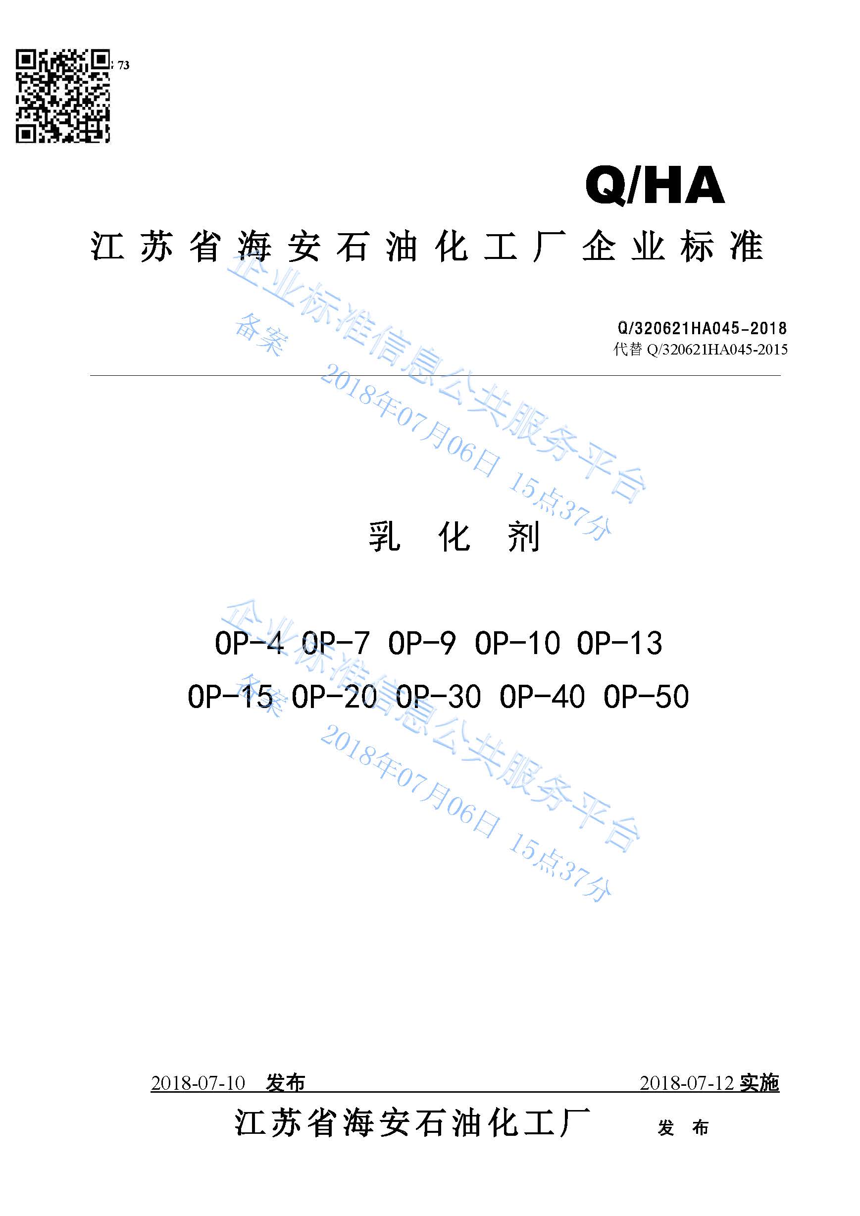 Q/320621HA045-2018 乳化剂OP-4 OP-7 OP-9 OP-10 OP-13 OP-15 OP-20 OP-30 OP-40 OP-50产品标准