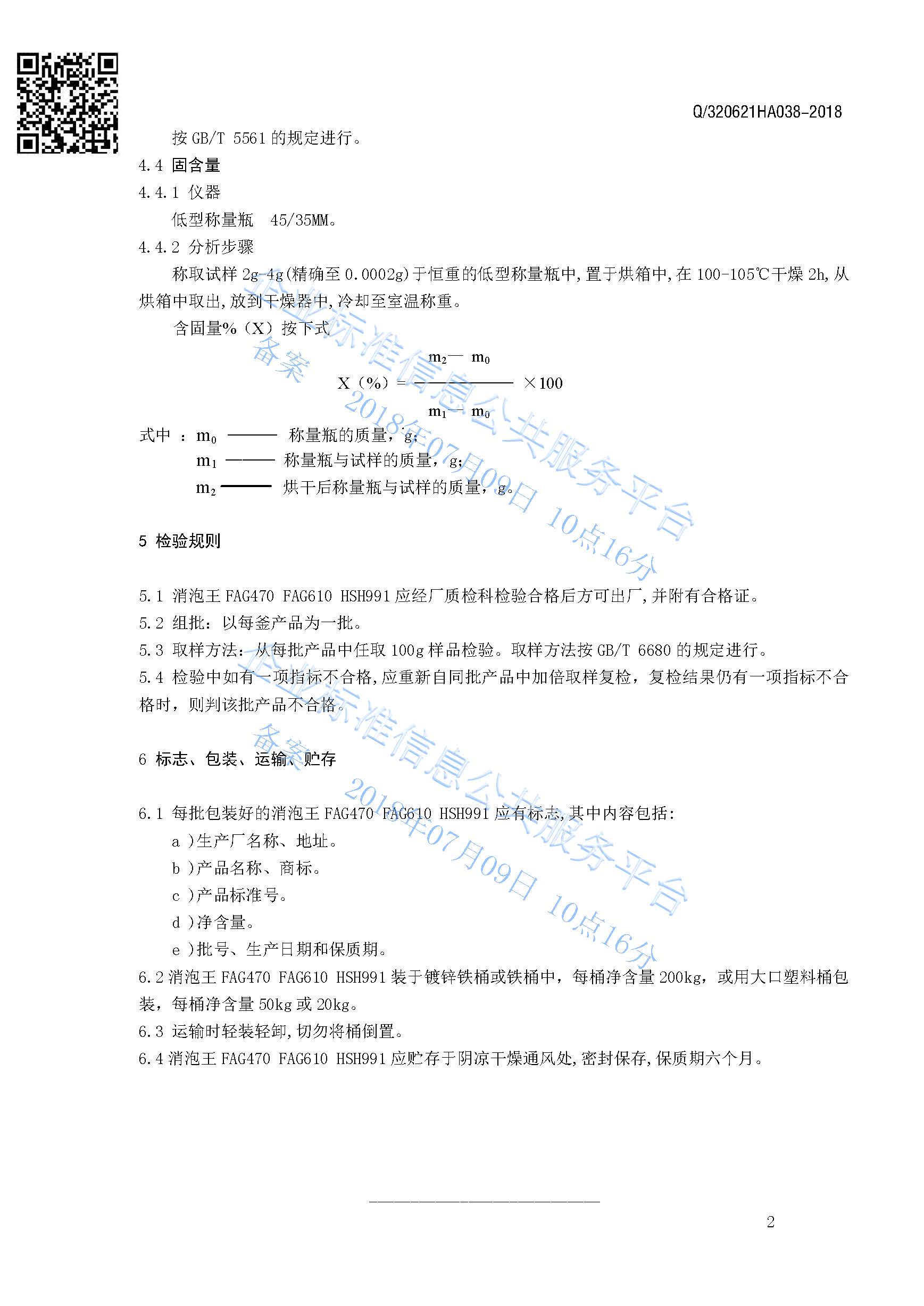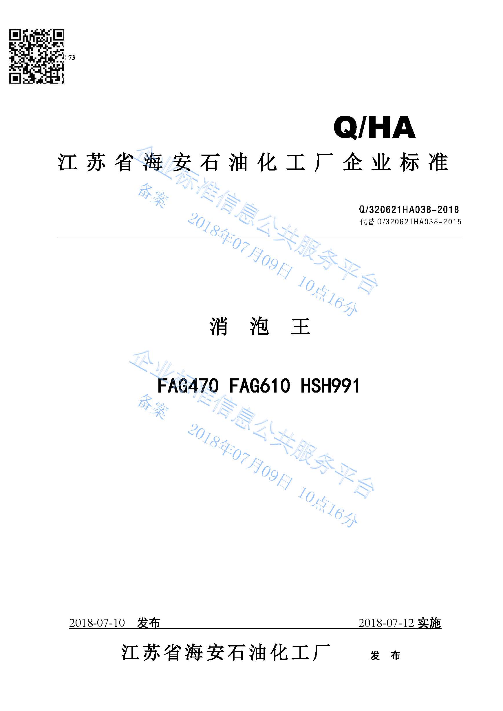 Q/320621HA038-2018 消泡王FAG470 FAG610 HSH991产品标准