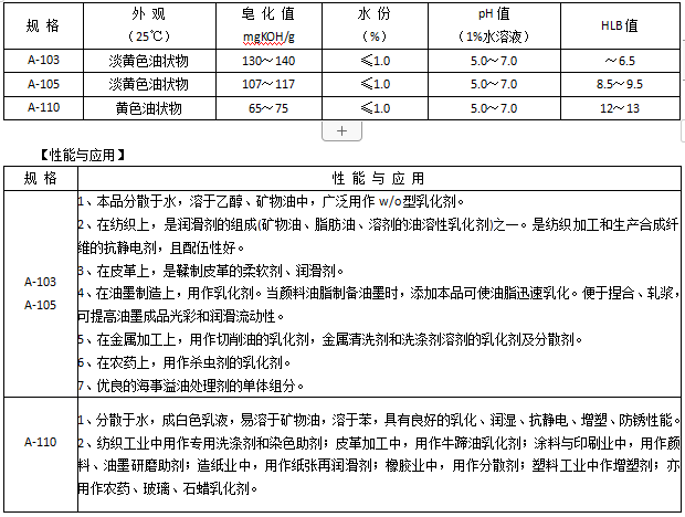 【型 号】乳化剂A-103、A-105、A-110